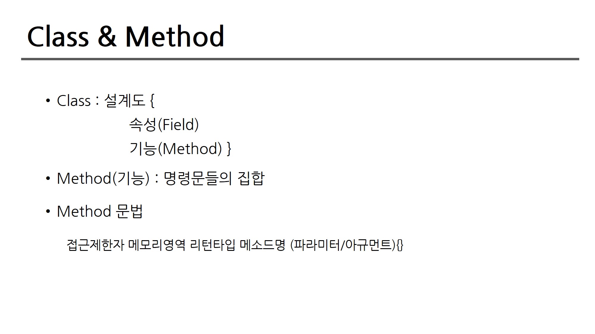 클래스와 메소드는 다룰 이야기가 많지만