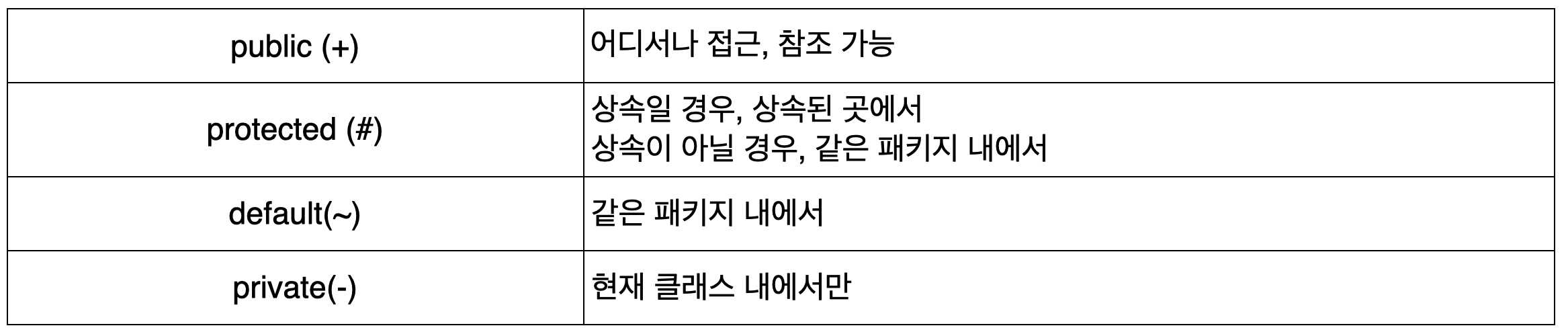 - 메소드를 호출할 수 있는 범위를 알려준다.