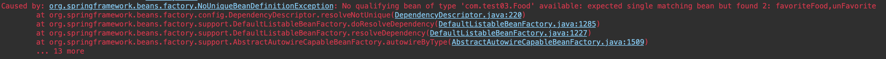 여러개의 대상이 있는 경우, NoUniqueBeanDefinitionException에러가 발생한다.