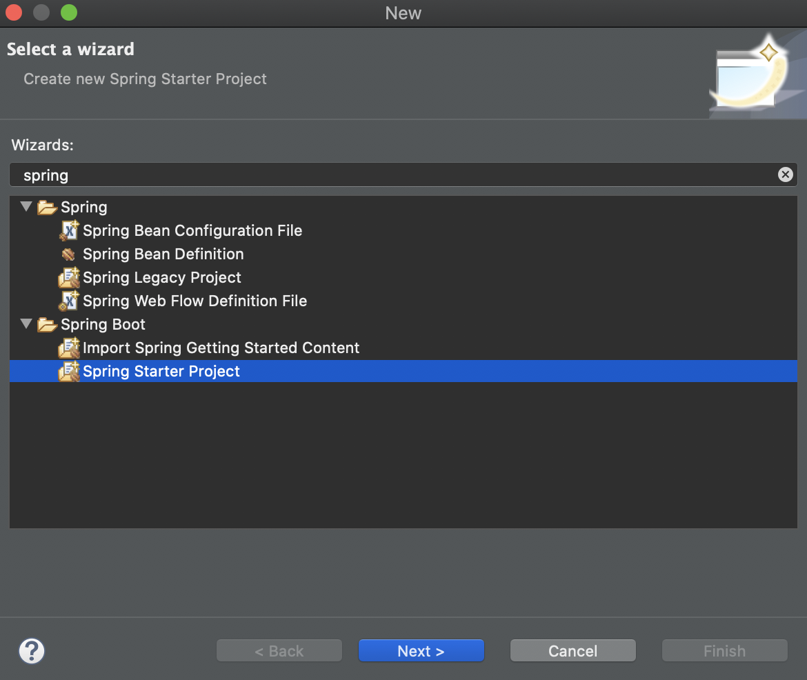 ▶︎ 이클립스에서 만들 경우 : Spring Starter Project로 만든다.