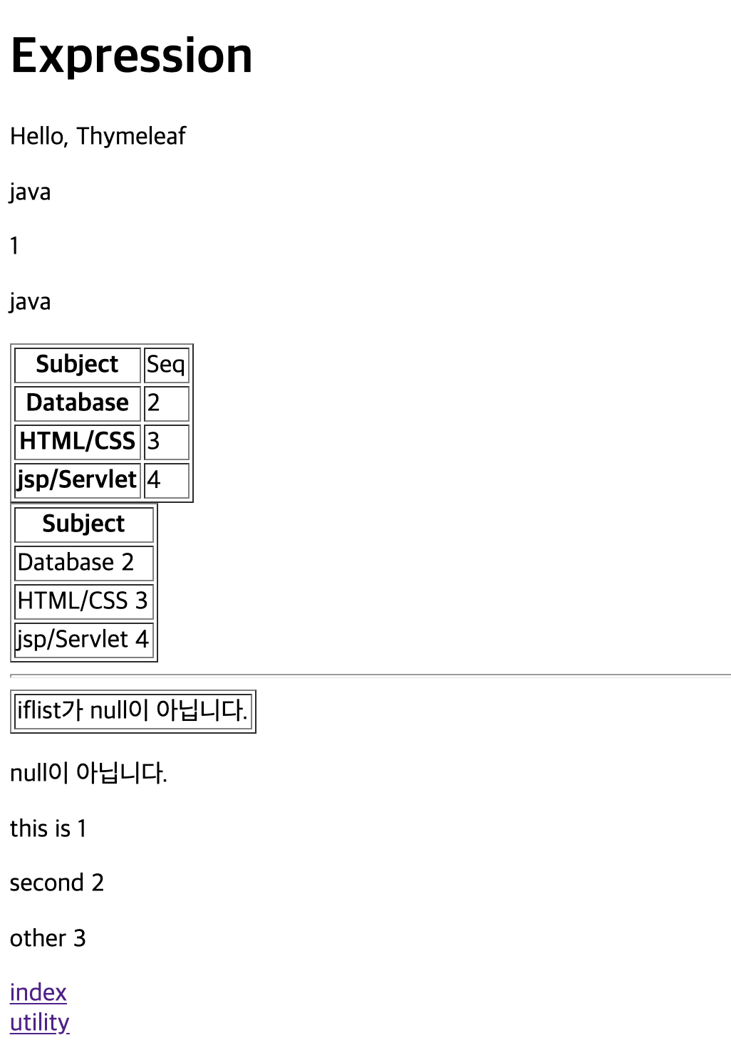 <p th:text="${list} ne null ? 'null이 아닙니다.' : 'null이 맞습니다.'">